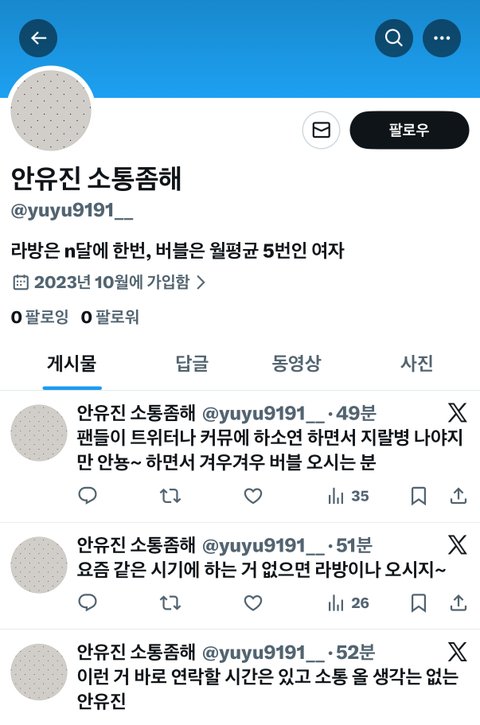 어제 버블받고 오늘 저러는게 정신병자 아님 뭔데 이 글도 지가 알계파고 지가 올린듯