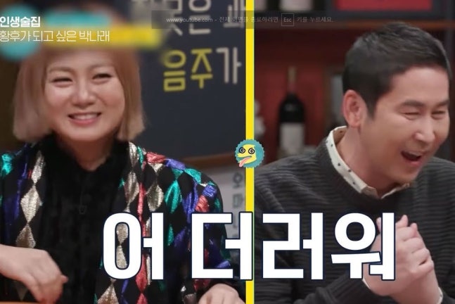 박나래는 "신동엽처럼 저렇게 19금의 황제를 이어 황후가 되고 싶었다. 잘되기 전에 안영미 선배한테 신동엽 선배님과 술자리를 너무 갖고 싶다고 했다"고 밝혔다. 이어 "인정받고 싶은 마음에 만나서 (선정적인 멘트를) 여러 가지 했는데 당시 선배님이 '나래야, 난 너처럼 그렇게 쓰레기는 아니다. 귀를 물로 씻고 오고 싶다'고 하셨다"고 고백했다. 이에 신동엽은 "의욕이 너무 넘쳐서 '이건 어떠냐'고 하는데 나는 너무 더러웠다"고 설명했다.