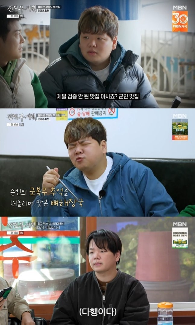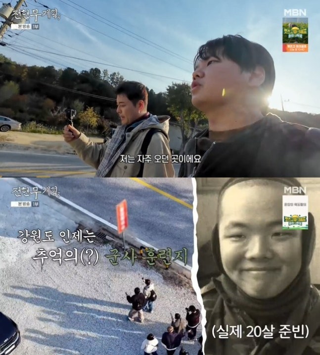 사진=MBN, 채널S ‘전현무계획3’ 캡처전현무, 곽튜브는 속초에서 홍천으로 가던 중 잠시 인제에 들렀다. 곽튜브는 “저는 자주 오던 곳이다. 군대가 근처여서 훈련받을 때 항상 인제에서 했다. 저한테는 좋은 추억만은 아니다. 항상 고생하러 가는 곳이 인제였다”라고 설명했다.