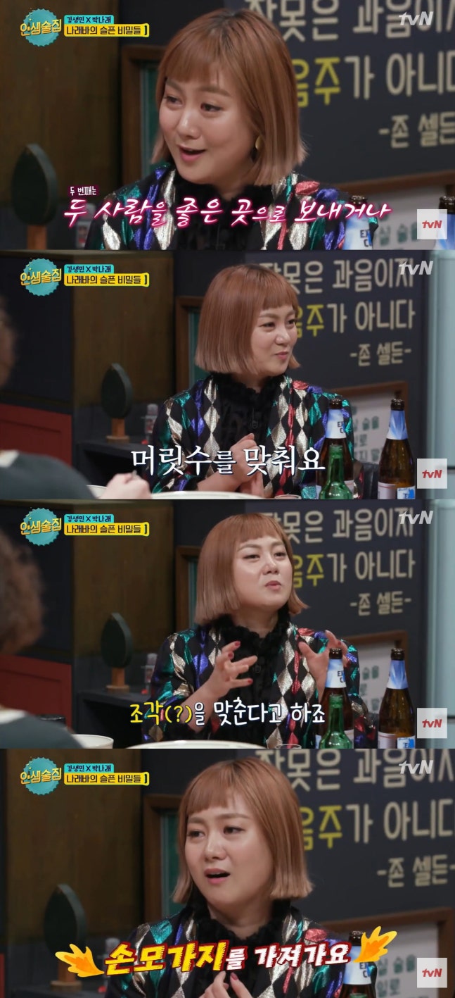 여러 방송에서 박나래가 밝힌 '나래바'의 규칙도 논란이 되고 있다. 박나래는 2017년 tvN '인생술집'에 출연해 "일단 안주가 나오기 전에 술을 마셔야 한다. 술자리에서는 두 가지 목표점을 갖고 있다. 첫 번째는 한 사람을 골로 보내거나 두 사람을 좋은 곳으로 보내거나. 항상 얘기하는 게 좋은 곳으로 가자는 거다"라며 "세 번째 규칙은 조각을 맞춘다. 남녀 성비를 맞춘다. 그 분들끼리 안 맞는 사람들이 있을 수 있지 않냐. 멤버들을 보고 조각을 맞춘다"고 밝혔다.