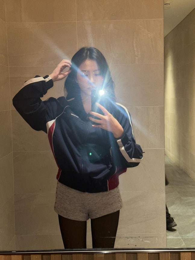 공개된 사진 속 예리는 네이비 컬러의 배색 트레이닝 점퍼에 그레이 쇼츠와 검은 스타킹을 매치해 캐주얼하면서도 슬림한 실루엣을 드러냈다.