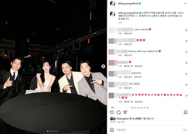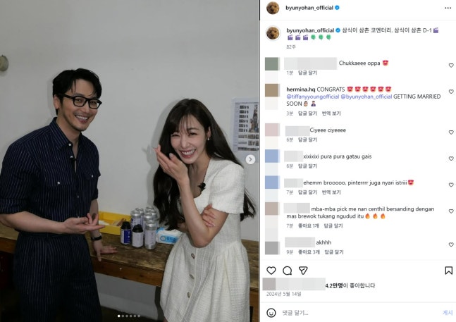 이 게시물에도 팬들이 변요한과 티파니의 교제를 축하하는 댓글을 남기고 있다.