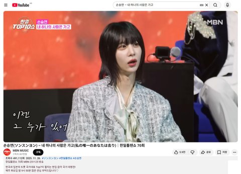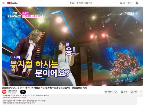 (사진5·6·7·8 설명) 손승연(ソンスンヨン) – 내 하나의 사람은 가고(私の唯一のあなたは去り)|한일톱텐쇼 70회