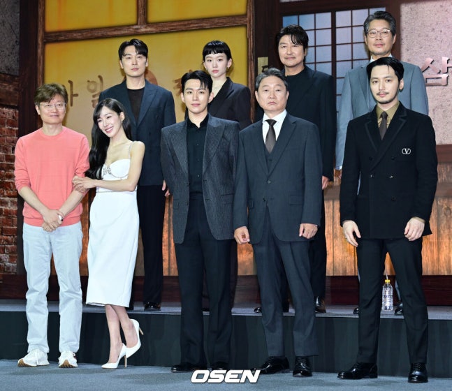 [OSEN=민경훈 기자] 8일 오전 서울 강남구 삼성동 그랜드 인터컨티넨탈 서울 파르나스 그랜드볼룸에서 디즈니+ 오리지널 시리즈 '삼식이 삼촌'(각본감독 신연식) 제작발표회가 열렸다.'삼식이 삼촌'은 전쟁 중에도 하루 세끼를 반드시 먹인다는 삼식이 삼촌(송강호)과 모두가 잘 먹고 잘 사는 나라를 만들고자 했던 엘리트 청년 김산(변요한)이 혼돈의 시대 속 함께 꿈을 이루고자 하는 뜨거운 이야기를 그린 작품.배우 송강호의 첫 시리즈물이자, 탄탄한 필력과 섬세한 연출력으로 독창적인 작품을 선보인 신연식 감독과 변요한, 이규형, 진기주, 서현우 등 믿고 보는 배우들의 만남으로 뜨거운 화제를 모으고 있다. 배우 송강호, 변요한, 진기주, 서현우, 오승훈, 주진모, 티파니 영, 유재명과 신연식 감독이 포토타임을 하고 있다. 2024.05.08 /rumi@osen.co.kr한편, 티파니 영은 2007년 그룹 소녀시대로 데뷔한 뒤 현재는 배우로 활동 중이다. 뮤지컬 ‘페임’, ‘시카고’ 등과 드라마 ‘재벌집 막내아들’, ‘삼식이 삼촌’ 등에 출연했다. 변요한은 2011년 영화 ‘토요근무’로 데뷔한 뒤 영화 ‘노리개’, ‘감시자들’, ‘들개’, ‘우는 남자’, ‘소셜포비아’, ‘마돈나’, ‘한산 용의 출현’, ‘독전2’, ‘그녀가 죽었다’ 등과 드라마 ‘미생’, ‘육룡이 나르샤’, ‘미스터 션샤인’, ‘삼식이 삼촌’, ‘백설공주에게 죽음을’ 등에 출연했다. /elnino8919@osen.co.kr