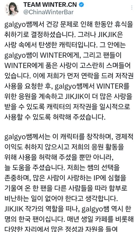 탈빠하신건지 뭔진 모르겠는데 일단 지금 윈터 팬들은 트위터 들어가봤자 기분만 상하겠더라 그래서 아마 잠깐 쉬는거일수도... 팬들 지금 트위터에서 미친 성희롱글 쌍욕하는글들 피뎊따고있던데 트위터 분위기 지금 장난아니게 에스파한테 여혐중이라 네임드들도 마음 편하진 않았을듯