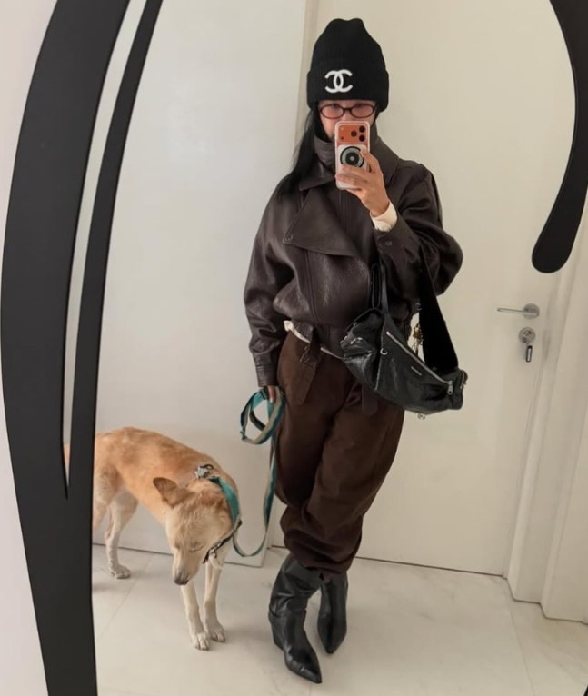 엄정화 소셜미디어공개된 사진에는 명품 C사 비니를 착용한 엄정화의 모습이 담겨있다. 56세 나이가 믿기지 않는 동안 비주얼과 힙한 분위기가 시선을 사로잡는다.