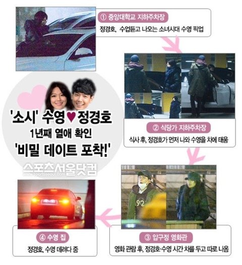 데이트 방식은 '007작전'을 방불케 했다. 전 국민이 다 아는 인기 걸그룹 소녀시대의 멤버와 배우라는 직업 특성상 두 사람은 완벽하게 위장을 하고 나서야 외출했다. 또 영화관을 들어갈 때와 나올 때 따로 이동해 대중의 시선을 피했다. 영화를 다 본 뒤에는 정경호가 먼저 나와 차량을 뺐고, 수영은 다른 통로로 혼자 나와 기다리고 있던 정경호의 차에 올라탔다. 정경호는 집에 바래다줄 때도 외부의 시선을 피해 지하 주차장 안에서 내려 주며 여자 친구를 보호했다.