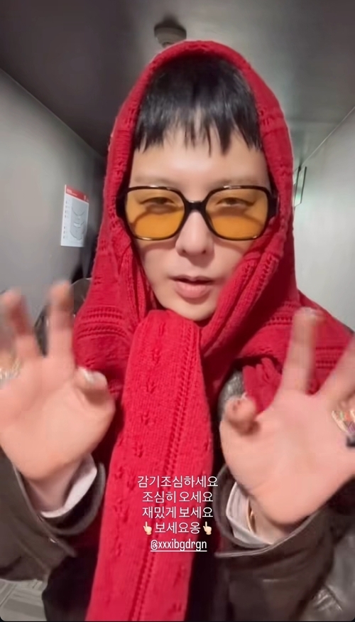 지드래곤이 14일 자신의 SNS에 “감기 조심하세요. 조심히 오세요. 재밌게 보세요. 보세요용”이라는 글과 함께 여러 장의 사진을 게재했다.
