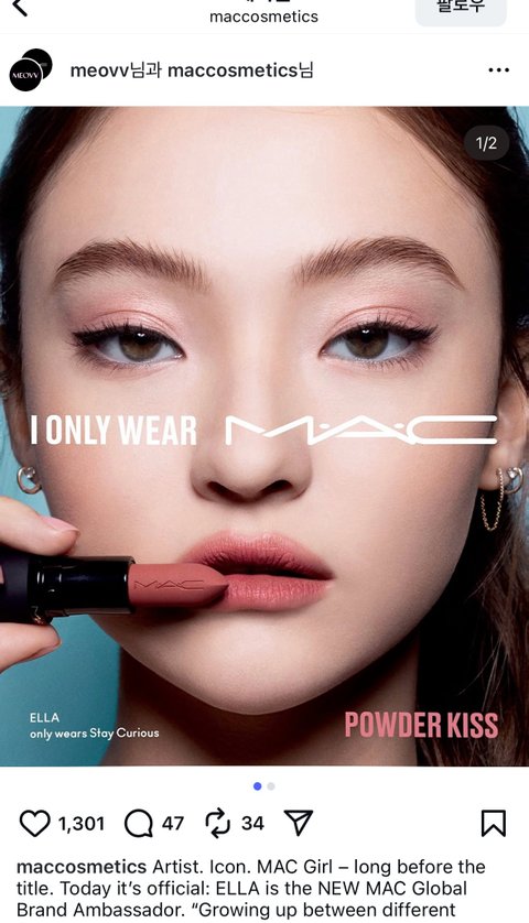 번역 아티스트, 아이콘, 타이틀이 붙기 훨씬 전부터 MAC girl 이라는데 모델 시절 샤넬 광고도 찍더니 맥도 찍었었나??