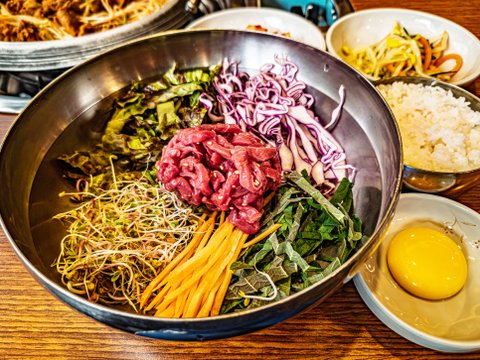 육회는 신선하고 계란이 들어가서 더욱 맛있다.