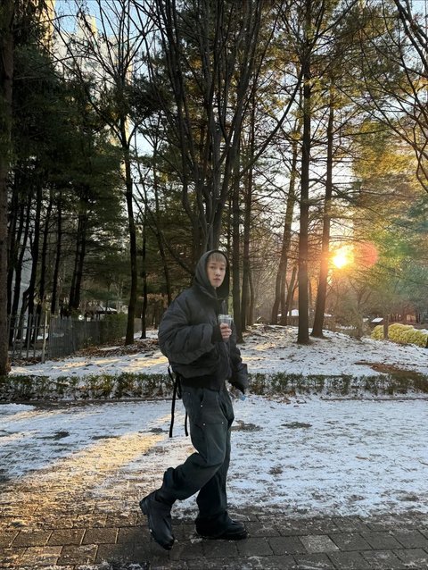 크러쉬는 이 사진을 별도의 글 없이 남겼다. 말 대신 선택한 겨울 노을과 공원의 정적이 스스로 이야기를 들려주는 듯한 장면이다. 바쁜 활동 속에서도 잠시 숨을 고르는 시간, 가볍게 걷는 동선과 손에 쥔 음료가 그 여유를 상징적으로 드러냈다.