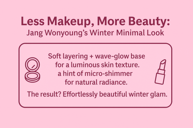 칙칙하기 쉬운 겨울 얼굴에 ‘과하지 않은 생기 + 초미세 광채’를 더하는 방식이기 때문에 MZ들이 가장 많이 저장하는 레퍼런스 역시 장원영이다.