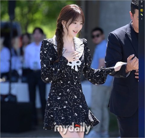 플라워 패턴 미니원피스에 힐을 신고 참석한 조이현은 가슴을 쓸어내리며 경호원의 부축을 받아 힙겹게 비포장 길을 걸었다.