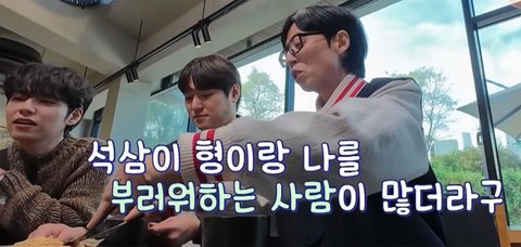 유재석: 근데 석삼이 형이랑 나를 부러워하는 사람이 은근 많더라구...