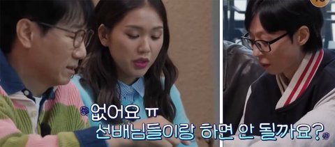 미미: 없어요 ㅜ 선배님들이랑 하면 안 될까요? 우리랑 해요~