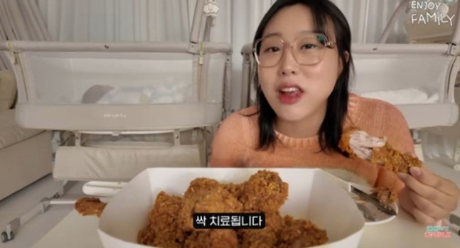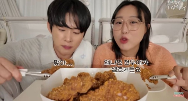 14일 엔조이커플에선 ‘소리내면 깬다! 쌍둥이 자는 동안 치킨 야식타임! 벌써 고개 드는 귀여운 강단이’라는 제목의 영상이 업로드 됐다.