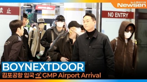 [김포국제공항=뉴스엔 김기태 기자] 가수 보이넥스트도어(BOYNEXTDOOR) 멤버 성호, 리우, 명재현, 태산, 이한, 운학이 12월 14일 일본에서 열린 '2025 뮤직뱅크 글로벌 페스티벌 in JAPAN'(2025 MUSIC BANK GLOBAL FESTIVAL IN JAPAN) 해외 공연 일정을 마치고 서울시 강서구 김포국제공항을 통해 입국하고 있다.