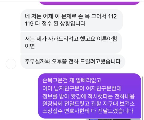 "오늘 낮에 치과에서 내 와이프한테 왜 그렇게 항의햇냐 그거 때문에 찾앗다.