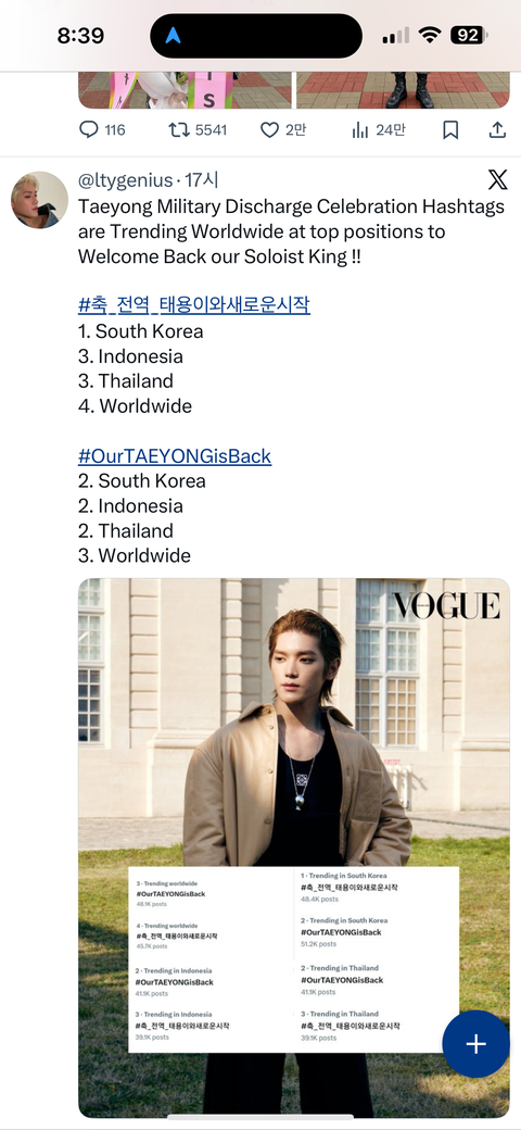 트위터(X) 기준으로 #축_전역_태용이와새로운시작