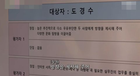 모르는 상태에서 평가자 2의 단점 읽는데 왜 난 광수 목소리로 읽히는 건가 ㅋㅋㅋㅋㅋㅋ