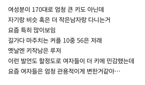 요즘 커플들 키차이 대부분 이런것같은
