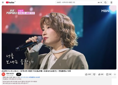(사진1·2·3·4 설명) 손승연(ソンスンヨン) – 내 하나의 사람은 가고(私の唯一のあなたは去り)|한일톱텐쇼 70회