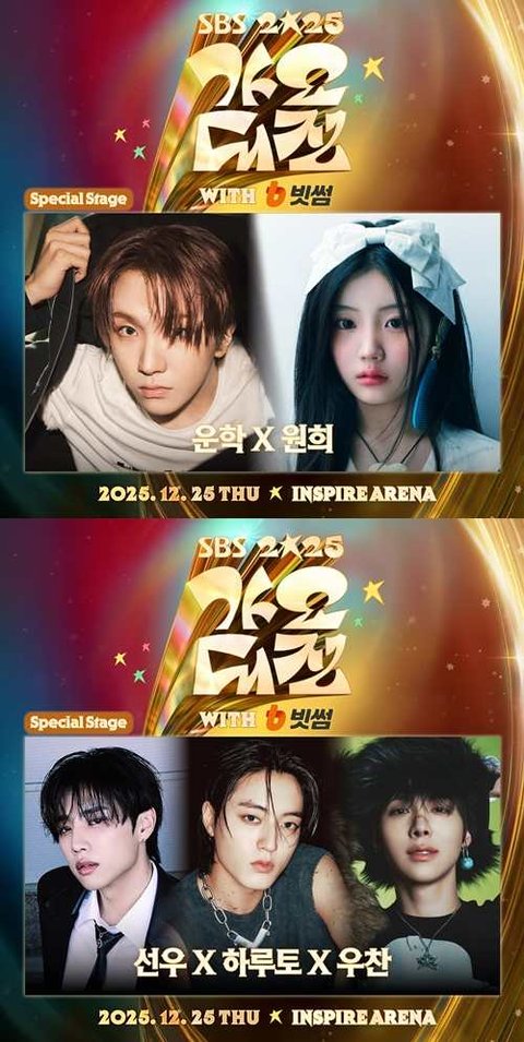 이밖에 ‘2025 SBS 가요대전’은 크리스마스 선물 같은 스페셜 스테이지를 25일 본 방송에서 선보인다. 투모로우바이투게더 연준과 미국 빌보드 차트에 대거 이름을 올리며 올 한 해 가파른 성장세를 입증한 글로벌 걸그룹 KATSEYE(캣츠아이)의 윤채가 함께하는 ‘Let Me Tell You (feat. Yoonchae of KATSEYE)’ 무대가 ‘2025 SBS 가요대전’에서 최초 공개된다.