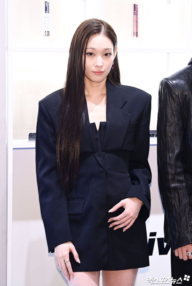 여기에 블랙 레더 롱 부츠를 매치해 늘씬한 다리 라인을 더욱 길고 슬림하게 연출했다. 깔끔하게 정돈된 긴 생머리를 늘어뜨려 시크하고 세련된 매력을 뽐냈다.