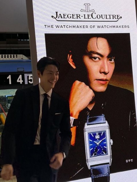 공개된 사진에는 버스 정류장 광고판 앞에 선 김우빈의 모습이 담겼다. 해당 광고는 김우빈이 모델로 활동 중인 시계 브랜드 화보로, 전광판 속 자신의 모습과 실제 김우빈이 나란히 포착돼 눈길을 끌었다.