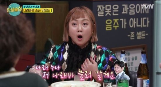MBC에브리원 비디오스타 방송 화면 캡처박나래는 2017년 12월 14일 방송된 tvN '인생술집'에서 나래바에 초대하고 싶은 연예인으로 박보검을 꼽았다. 박나래는 "방송에서 박보검 씨를 초대하고 싶다고 말했다. 최근 '백상예술대상'에서 그분을 만났다. 멀리서 저를 부르더니 '나래 누나, 저 나래바 놀러 갈게요. 초대해 주세요'라고 하더라. 그런데 연락처를 안 주고 가셨다. 회사에 공문을 보내야 하나 생각 중"이라고 말했다.