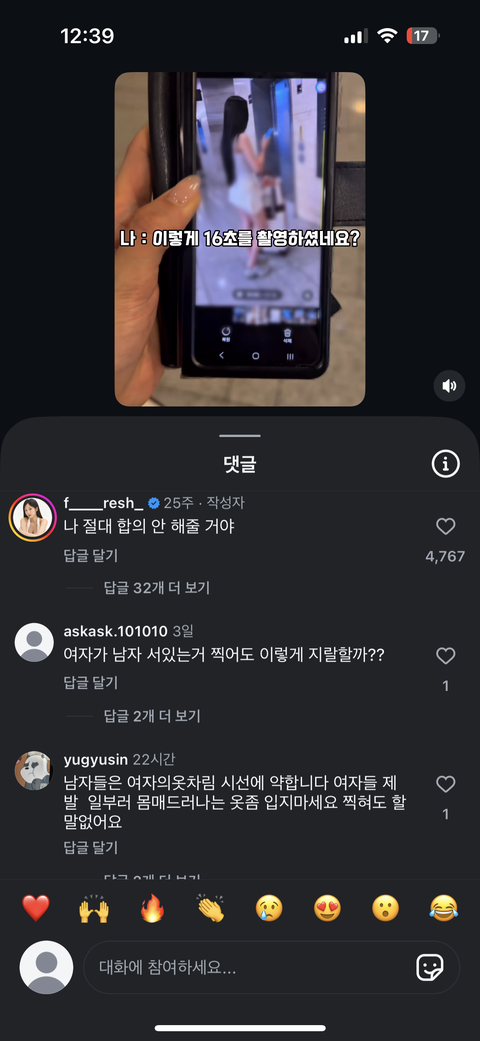 더 역겨운게 뭔지알아?뭐 세상애 개념없고 쓰레기인 사람들도 있으니 그렇다 치는데 저 댓글들을 욕하면 페미,남혐으로 몰고가는게 대부분 한남들이라는거.여기 판에도 많아 인스타까지 갈것도 없이.예전엔 소수만 그러겠지 했는데 이젠 소수만 정상이고 나머진 다 한남이라 생각하면 됨