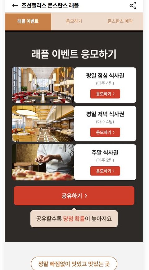 캐치테이블x 조선팰리스 콘스탄스 래플 떴네