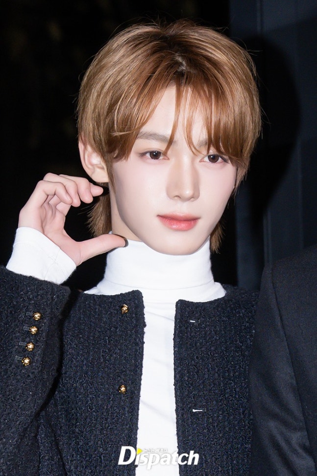 한진은 트위드 재킷과 데님 팬츠로 멋을 냈다. 잘생긴 비주얼이 돋보였다.