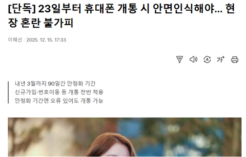 23일부터 휴대폰 개통할때 안면인식해야 개통할 수 있다고 함.