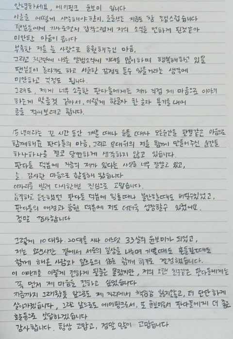 휀들한테 쓴 자필 편지 보니까 ㄹㅇ 실감난다 뽐아 ㅠㅠㅠㅠㅠ
