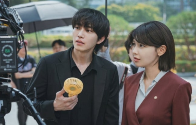 특히 첫 공개를 나흘 앞둔 18일에는 최수영과 김재영의 케미스트리를 엿볼 수 있는 뒤모습이 공개되었다. 스타 변호사 '맹세나' 역할의 최수영과 프로 아이돌인 '도라익' 역할의 김재영이 서로의 캐릭터에 완벽하게 몰입한 모습이 인상적이다.