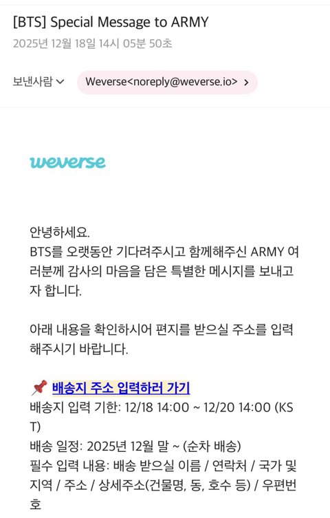 아미 멤버쉽 골드 멤버에 한해 발송됐다니까