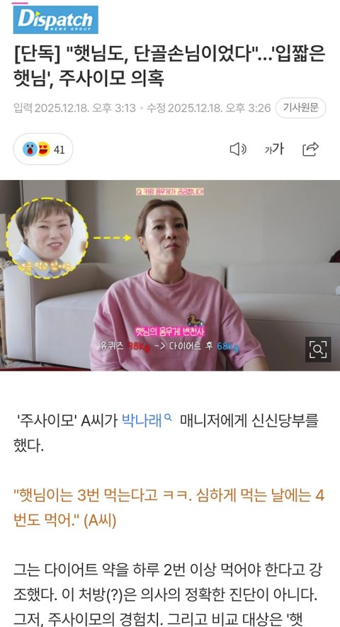 디패 단독 입짧은햇님 주사이모 연결 의혹