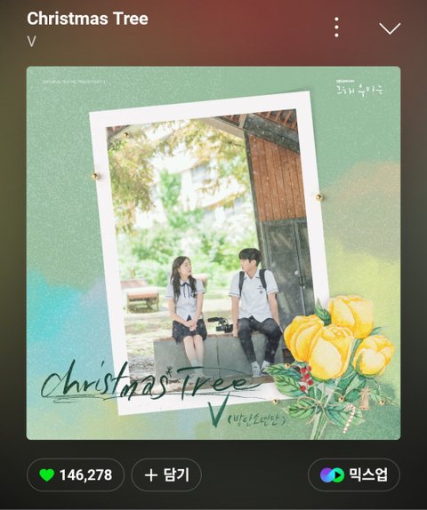 그 해 우리는 OST인데 여름에도 생각나는 노래고 제목때문에 크리스마스에도 생각 남 여름엔 시원 청량한 여름의 청춘느낌이고 겨울엔 포근한 벨벳 느낌임 개좋아