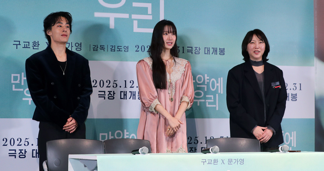 31일 개봉하는 영화 ‘만약에 우리’는 20대부터 30대를 통과하는 현실 연인 은호(구교환)·정원(문가영)의 10년 서사를 담았다. 18일 서울 용산구 CGV용산에서 열린 기자간담회에 배우 구교환, 문가영과 김도영 감독이 참석해 이야기를 나눴다.