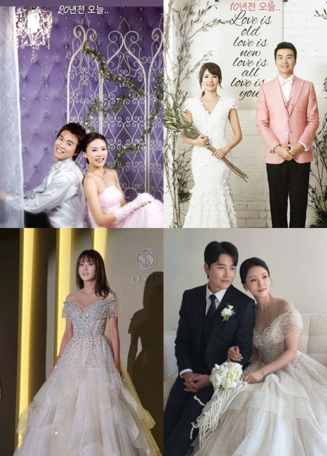 소셜미디어함께 공개된 사진에는 새롭게 웨딩 촬영에 나선 부부의 모습이 담겨 훈훈함을 더했다. 이수진은 20년 전 웨딩 화보도 공개, 풋풋했던 과거를 돌아보기도 했다.
