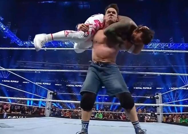 로얄럼블 2025어떤 기술도 없이 단순히 손으로 밀어 상대를, 그것도 WWE 아이콘 존 시나를 재물로 바치며 제이 우소 우승을 챙겨준 것이다. 물론 이미 짜여진 각본으로 제이 우소 우승을 밀어주려던 WWE와 CCO 트리플H의 계획이 있었을 것이다.