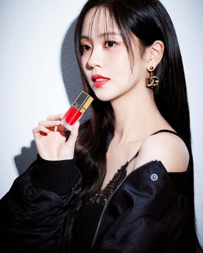 김소현 소셜미디어흑발의 김소현은 블랙 점퍼와 그 안에 블랙 시스루 의상을 착용했다. 김소현의 입술은 머리색과 대비되는 붉은색이었다. 김소현의 투명한 피부 위에 올라간 붉은색 립은 시선을 집중시키게 만들었다.