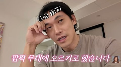그는 "공연 전날 딸 하임이를 재우고 급하게 카메라를 켰다. 너무너무 긴장 된다. 콘서트에 깜짝 게스트로 출연하게 됐다"며 "지금 와이프도 하임이도 모르는 상태인데 재밌을 거 같다. 근데 지금 손발이 떨린다. 이런 긴장감을 없앨수 있는 방법은 연습밖에 없다. 지금 나가서 될 때까지 연습하겠다"고 밝혔다.