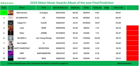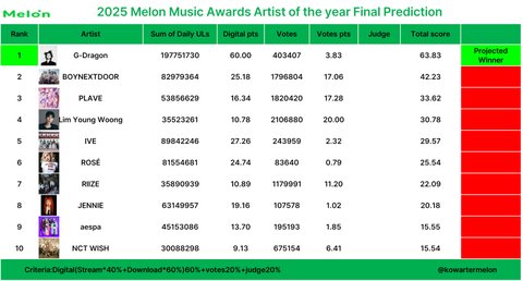 모든 예측결과 그대로 대상 3개 싹쓸이하고 3관왕