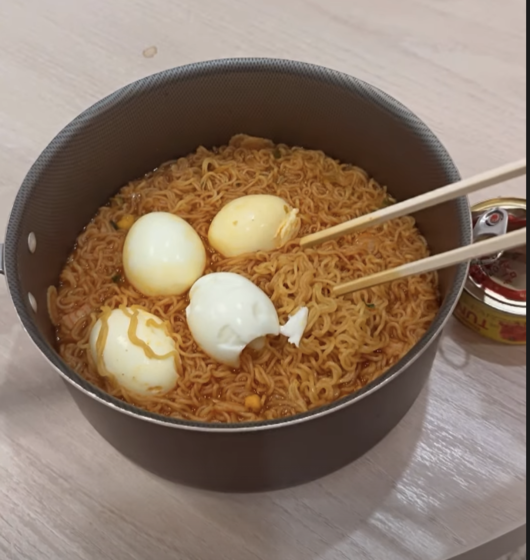 공개된 사진 속에는 보기만 해도 배부른 ‘고칼로리’ 라면이 담겨 있다. 특히 라면 그릇 안에는 무려 4개의 계란이 들어가 있어 눈길을 끌었으며, 그 옆에는 단백질 보충을 위한 참치캔까지 놓여 있어 남다른 먹성을 짐작게 했다.