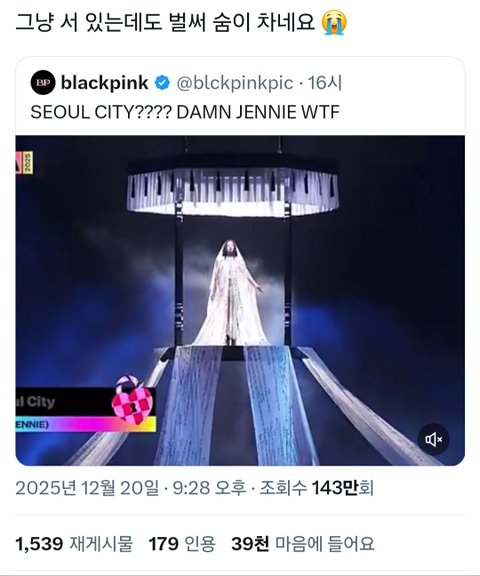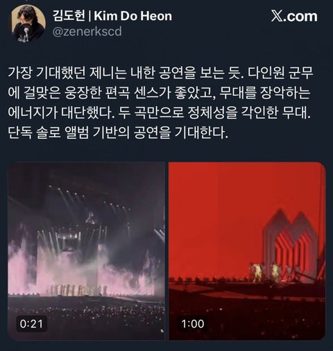 실제로 저기 무대보러간 음악 평론가가 제니무대극찬함 이사람 딱 제니랑 엑소만 후기남김 좋았다고