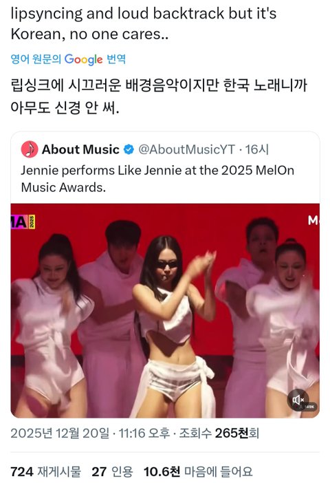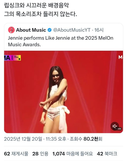 저거 계정은 왜다짜르고 들고와??걍 평소에도 제니뭐하나 꼬투리 잡을꺼없나 눈에 불키고보는애들 계정이잖아 저런걸로치면 k팝돌에 무대잘하는애 한명도없음 ㅋㅋ어제 멜뮤 끝나고 전세계 실트듬
