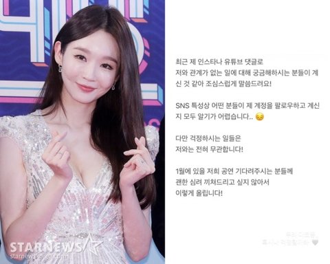 다행히 이는 사실이 아니었다. 강민경은 지난 20일 개인 SNS에 "최근 내 인스타나 유튜브 댓글로 나와 관계가 없는 일에 대해 궁금해하시는 분들이 계신 것 같아 조심스럽게 말씀드린다"면서 "SNS 특성상 어떤 분들이 내 계정을 팔로우하고 계신지 모두 알기가 어렵다. 다만 걱정하시는 일들은 나와는 전혀 무관하다"라고 딱 잘라 말했다.