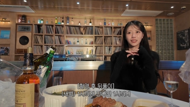 그냥 이미주 채널 캡처'그냥 이미주' 제작진은 "마지막 음주 언제였어요?"라며 기습 질문했다. 이미주는 머뭇거리며 "부끄럽다 말하기. 어제"라고 답했다. 그는 "어제 94즈와 마셨다. 어제 94즈 친구들이랑 문별의 채널 '문별이다' 그걸 찍었다"고 말했다.